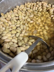 大豆は前日から母が煮て準備してくれています。