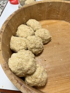 手のひらサイズに丸めていきます。