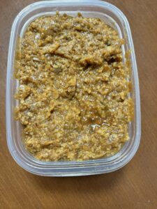 それを保存用の瓶に入れて、ヘラでギュウギュウと押して詰めていきます。
